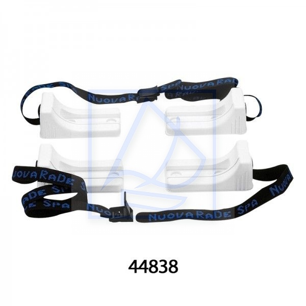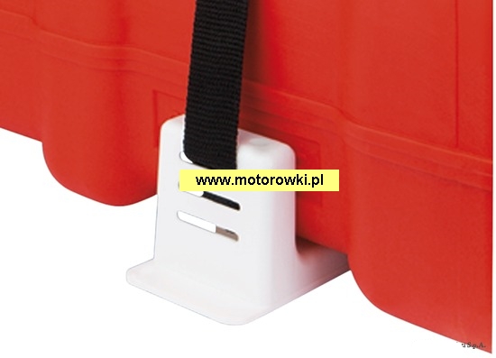 Mocowanie zbiornika paliwa z taśmą, w skład zestawu wchodzą: 4 x podstawka plastikowa biała i 2 x pas spinający.