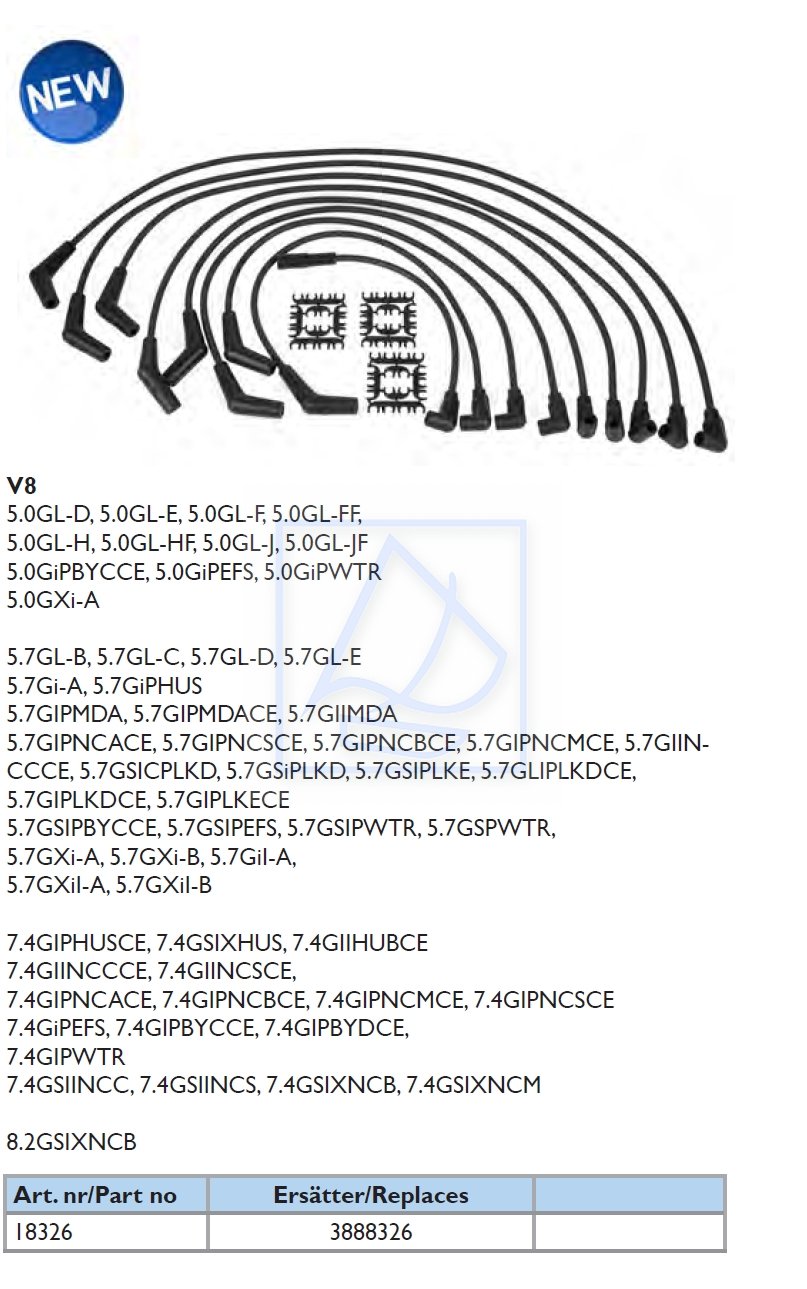 Kable zapłonowe Volvo Penta V8 5,0L 5,7GL 3888326 - zamiennik ORB 18326