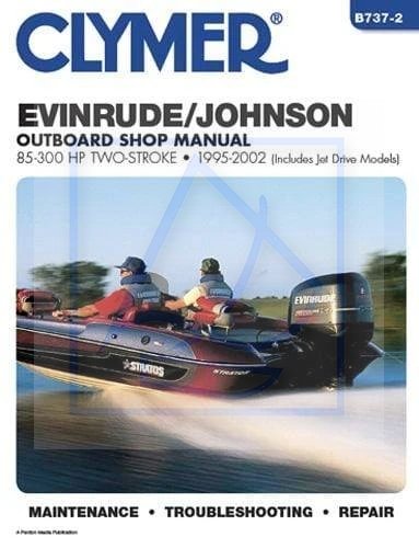This Clymer Evinrude-Johnson 85-300 hp 1995-2002 Outboard Boat Repair Manual provides detailed service information, step-by-step repair instruction and maintenance specifications for 1995-2002 Evinrude-Johnson 85-300hp outboard engines including 65 Jet, 80 Jet, 85 Backtroller, 88 Special, 90 Special, 105 Jet, 112 Special, 115 Special, 130 HP, 150 HP, 175 HP, 200 HP, 225 HP, 250 HP, 300 HP and 90 - 225 HP Ficht outboard boat motors.
