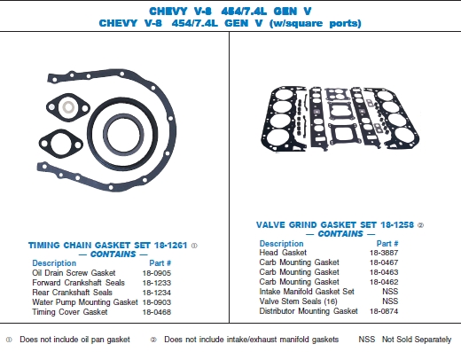 Komplet uszczelnień góra do remontu głównego silnika stacjonarnego/wbudowanego typu GM 454 CID 7,4L V8 gen. V (w/square ports) Zawiera uszczelki pod głowicę Sierra 18-3887 2szt.