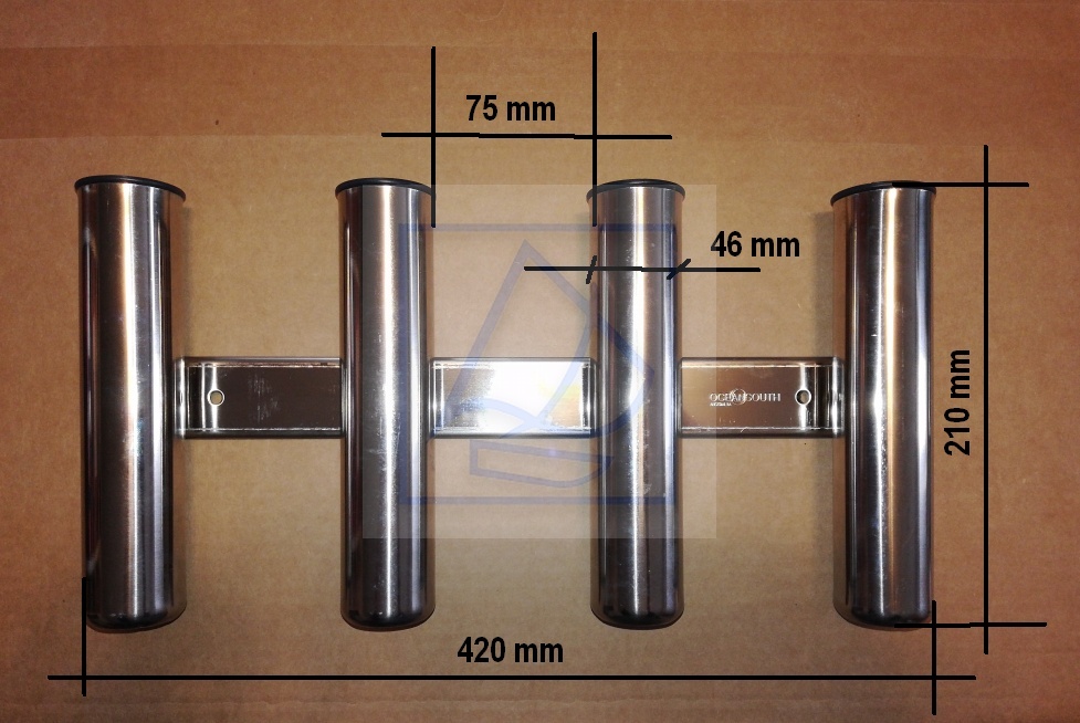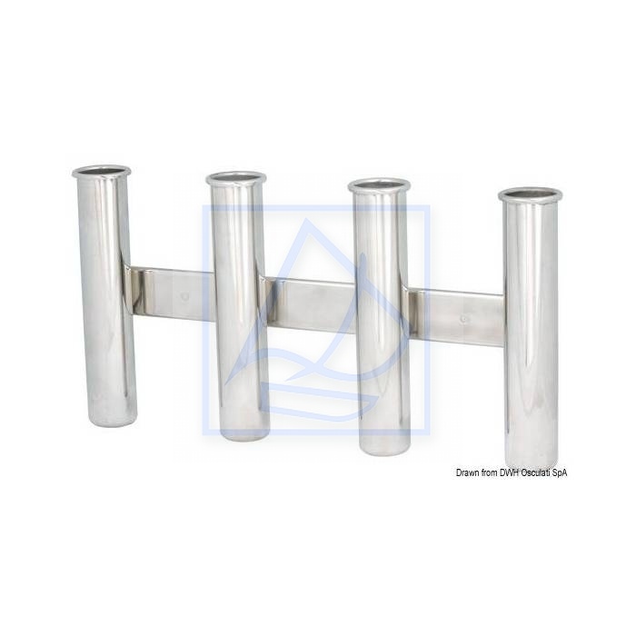Uchwyt na 4 wędki ( poczwórny ) ze stali nierdzewnej ASI 316 do mocowania wędek na pionowej ścianie łodzi, garażu itd. Służy do przechowywania lub przewożenia wędek.