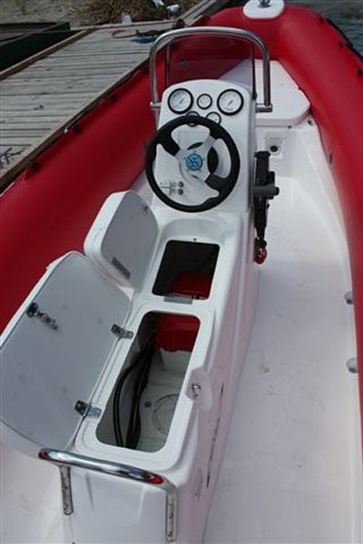 Konsola sterowa dwuosobowa typu Jockey ze schowkiem i siedziskiem tapicerowanym , owiewka z plexi, układ kierowniczy ze sterociągiem i kołem sterowym do silników o mocy do 200KM .