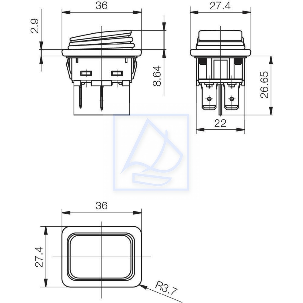 Typ przycisku / przełącznika (Kategoryzacja): Przełącznik kołyskowy