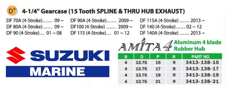 Suzuki Johnson Evinrude For 4-Stroke, 13.75 Inch Diameter x 17 Inch Pitch, 4 Blade Aluminum, Right Hand Rotation