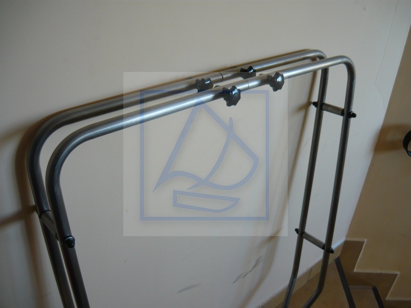 Montaż i demontaż masztu do pawęży za pomocą 4 śrub nierdzewnych zakończonych nakrętkami motylkowymi. Maszt można rozłożyc na 2 połowy odkręcając górne śruby. Grubość pawęży 4 cm