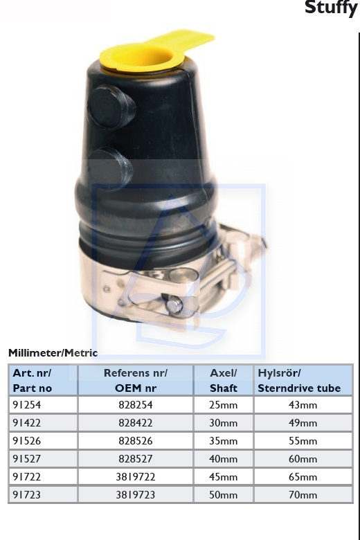 Ten zestaw jest dostarczany z elastyczną dławnicą, zaciskiem mocującym do pochwy i uniwersalną tuleją, która pasuje do wału napędowego i chroni go.